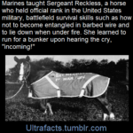 She quickly became part of the unit and was allowed to roam freely through camp, entering the marines’ tents, where she would sleep on cold nights, and was known for her willingness to eat nearly anything, including scrambled eggs, beer, coca-cola and, once, about $30 worth of poker chips.