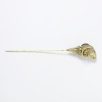This pin is one of a pair. They are both marked with silver marks which show they were made in the Papal States between 1815 and 1860. They were originally worn with an elaborate headdress of gold ribbons topped with a pompom of red velvet, which has also, most rarely, survived. They were bought as part of the Castellani collection of Italian Peasant Jewellery at the International Exhibition, Paris, 1867. The hair pins cost 18 shillings each, and the gold ribbons £1 12s.