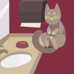 Here’s something odd: There is a cat hovering in the men’s bathroom at the radio station here. He seems perfectly happy and healthy, but it’s floating about four feet off the ground next to the sink…