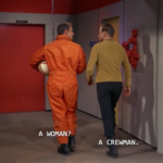 Posted on September 19, 2013October 7, 2018 by merindab_chslet thetrekkiehasthephonebox: Christopher: A woman? Kirk: A crewman. OH LOOK AT THAT THE 1960S