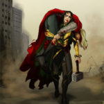It did not matter. Loki hauls his unconscious brother onto his back and to safety. Picking up The Hammer was an afterthought.At deviatArt