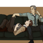 the lovely mystradesexytimes commissioned me to draw mycroft falling asleep in lestrade’s lap! cute babs are cute