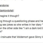 Posted on October 4, 2014September 14, 2018 by merindab_chslet lupinedawn: letsmakeourownfairytale: #favourite harry potter headcanons I just fell out of my damn chair these are fantastic
