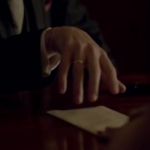 Just a quick screencap run-through of a few of the times Mycroft’s right hand is the central focus of a shot and you would have had a chance to see the ring on the fourth finger of his hand. Apparently some people fail at the first Sherlockian hurdle and neither observe nor even see, because they’re just spotting it now in series three and have jumped to the conclusion he’s secretly found himself a ‘goldfish’ and got married during the hiatus. Nope!