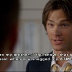 We tend to see the tragedy of What Is And What Should Never Be as Dean and Sam not being close in that dream world as they are in their reality, but what gets me is the reason for that. Dean’s wish was that his mother never died, and in that world — the world that was created in his own head — she raised a family, John was a regular dad who played in a baseball league, and Sam got to go to Stanford and get engaged to Jess. But Dean was still a drunk who lied and stole even from his own family. He was a disappointment to his mother and estranged from his brother. He couldn’t even image himself with Cassie or Lisa. He had to make up a girlfriend from a beer ad. So, the real tragedy of What Is And What Should Never Be is that Dean thinks so little of himself that he couldn’t image himself as a better person. He thinks that his dishonesty, drinking, and stealing are inherent and not a result of the way he was raised and the life he’s lead.