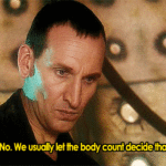 After Dean and Sam “aggressively hitchhike” onto the TARDIS, Sam tries to explain their situation to a very annoyed Doctor.