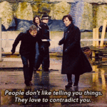 Although he isn’t really holding it up for John, he is actually just holding it up for himself. John just manages to get under it before Sherlock lets go.