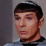 This particular moment in Star Trek is actually quite important. A lot of people don’t realise that understanding something is not the same as approving of something. This particular episode (A Taste of Armageddon) had a civilization where war was fought on computers instead of on the battlefield and instead of people dying in combat they would send the calculated amount of “casualities” into a camp to die. Kirk is outraged completely by this and rightly should be, but Spock is not so overtly disapproving. He understands why they might think their solution is better for their civilization and takes the time to think about why they are doing it. Even though he can understand why, he still believes it is wrong for them to be doing it.