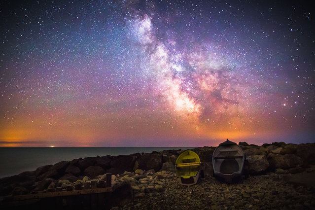 The galactic core of the milky way occupied by two small wooden boats on July 2, 2014, in Isle of Wight, UK. (Photo by Chad Powell/Barcroft Media)