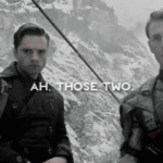 She trails off, her eyes steadily getting bigger. They dart to the large digital image of James Buchanan Barnes, then back to his face. The Winter Soldier’s eyes dart, too, over the exits and the crowd and the girl’s distracted mother–attempting to corral three other black-haired children–before landing back on the girl’s face, where an improbable grin has begun to grow.