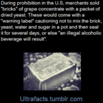 To get around prohibition, people sold bricks of grape concentration that came with a ‘warning’ teaching people how to make wine.