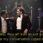 Hamlet Act 3 Scene 2– Hamlet loved Horatio as more than just a friend, and you can’t tell me any differently; it’s all there in the subtext.