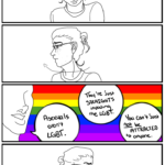 My ass in this comic would walk over from the LGBT+ side and carry that person over to where I was on the LGBT+ side because damnit y’all belong with us