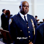 I started watching Brooklyn 99 yesterday, still only a few episodes in, but a random thing I noticed was that the Captain had colored binders behind him arranged like a gay pride flag.