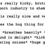 Policing fic content is a slippery slope. Even if you only police the “worst” stuff, you create an environment where the more sensitive authors and no few of the ones “shipping to cope” are no longer comfortable posting at all. Attacking people for posting fic about rape/abuse/etc. is demanding that all survivors disclose. No amount of whining and backtracking will change this fact. It is a disgusting behavior that drives people from your fandoms and creates needless misery while adding nothing of value to the community.