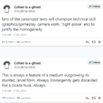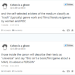 this is seriously exactly how it happened. Women were actually the first rock and roll ‘critics’ because they would write in to women’s papers and magazines to share and discuss what their kids were listening to when men still thought it was trashy teeny bopper music. once it became a lucrative, mainstream genre men shoved women out of the space. Men also tend to be gatekeepers once they move into formerly female spaces – early trek fandom was incredibly open and inclusive; women would set up fan get togethers in their own houses to discuss the show or invite the actors to visit before conventions became a thing, and then were huge in organizing the first conventions – but now the stereotype of a trekkie is a nerdy white dude who scoffs derisively at casual fans and newbies with his encyclopedic and pedantic knowledge of trek