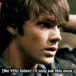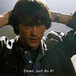 “Come on, Castiel. You’re gonna wake up with knots the size of terriers, you sleep here.”